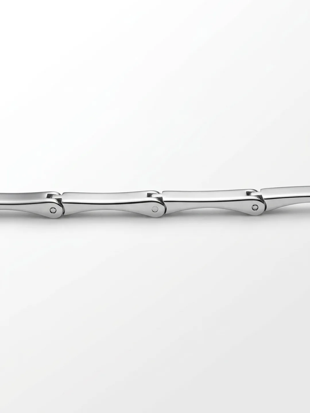 The Framework Link bracelet symbolizes the fundamental structures that give shape, strength, and definition to a life lived with intention. Each distinct, angular link represents a vital component of your personal framework – be it your core values, foundational beliefs, key relationships, or defining goals.