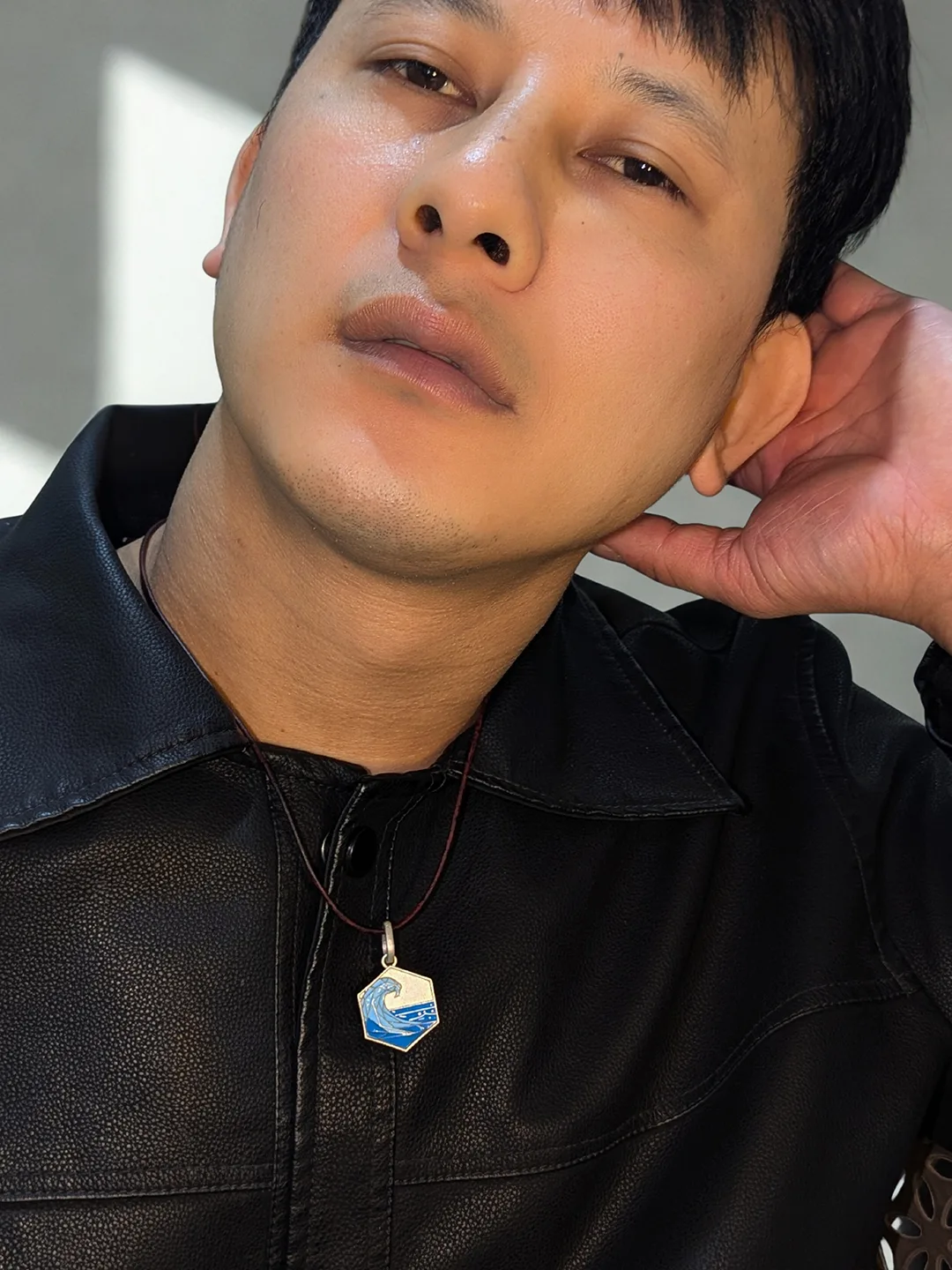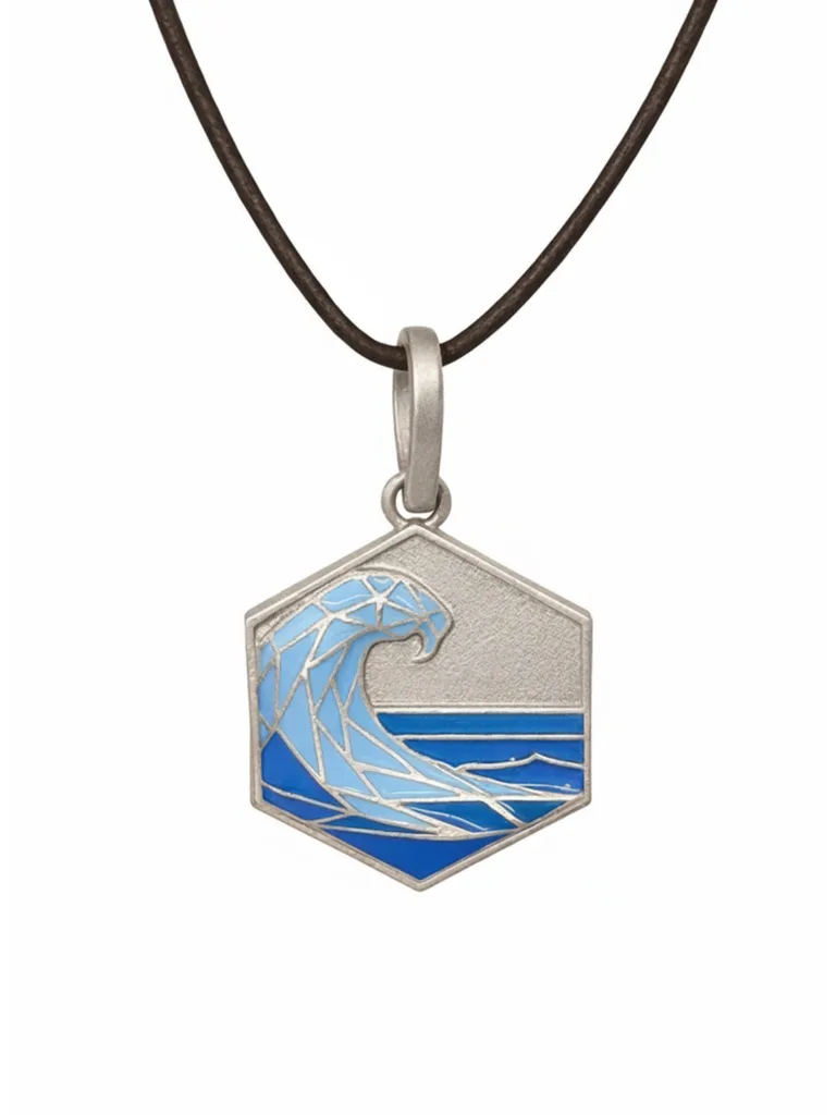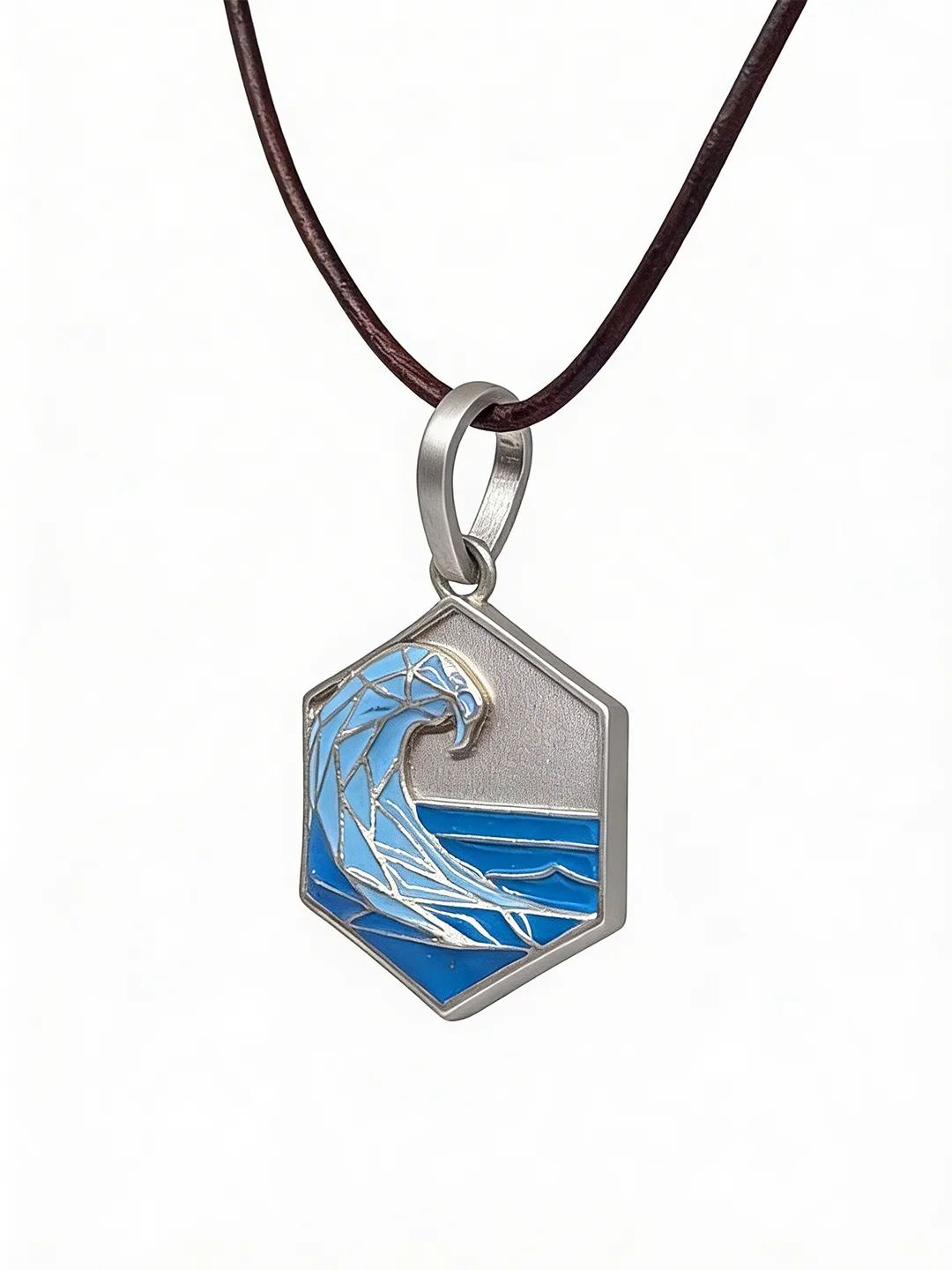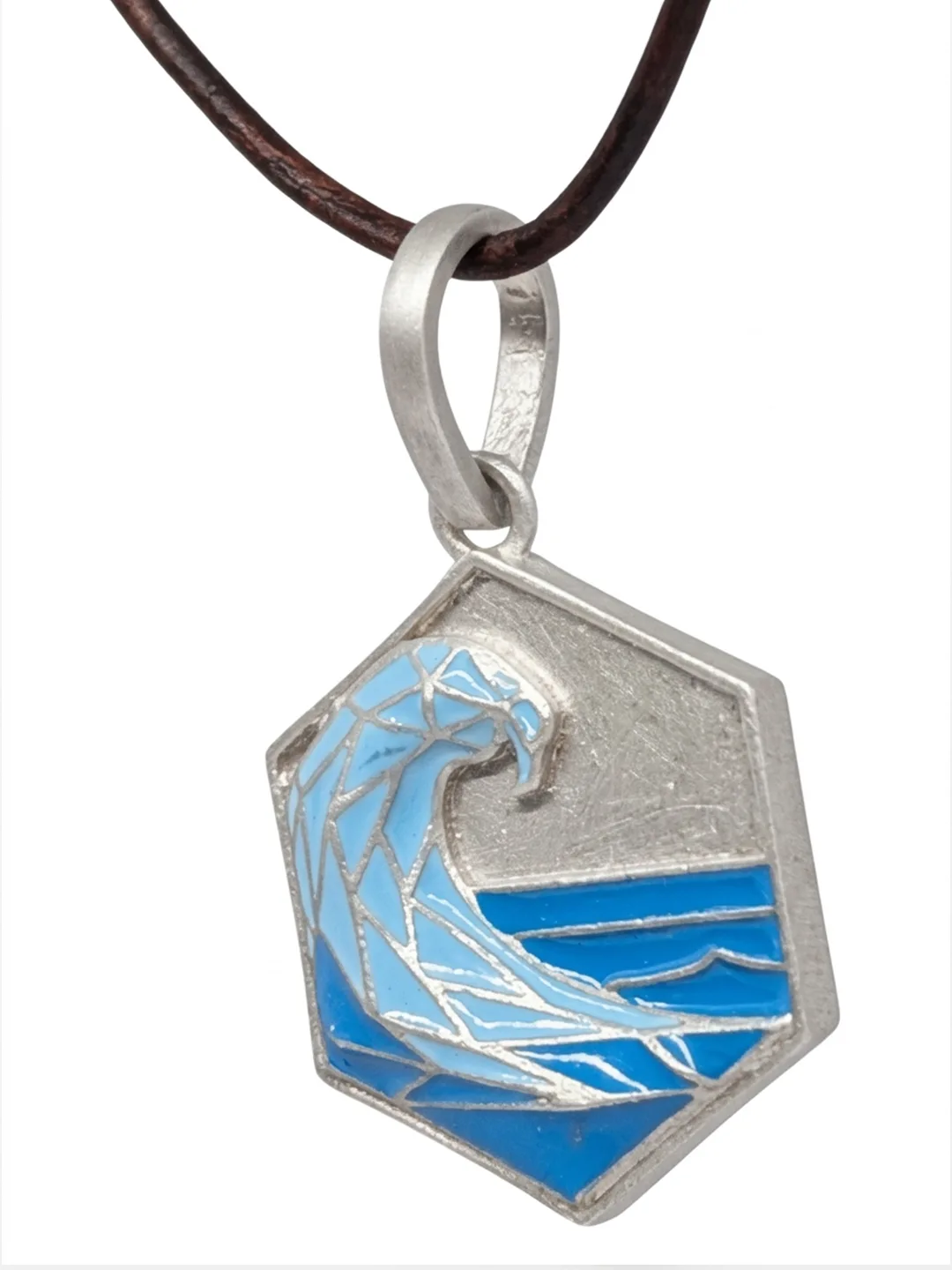 Sterling Silver Wave Pendant with Blue Enamel and Adjustable Leather Strap